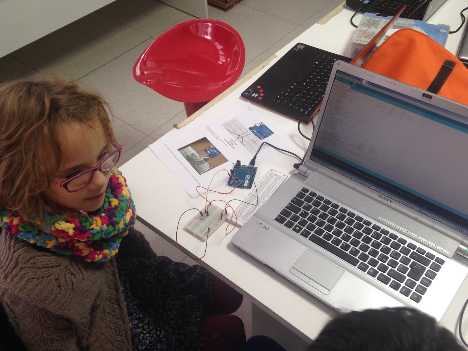 Parallelamente il Gruppo 3 (11-13 anni) ha iniziato il laboratorio Cappuccetto infraRosso: si trattava di costruire un semplice sensore per la misura della frequenza cardiaca, basato sostanzialmente su una scheda Arduino Uno R3 (gentilmente prestataci dal CSF) e su una coppia emettitore-rilevatore IR.