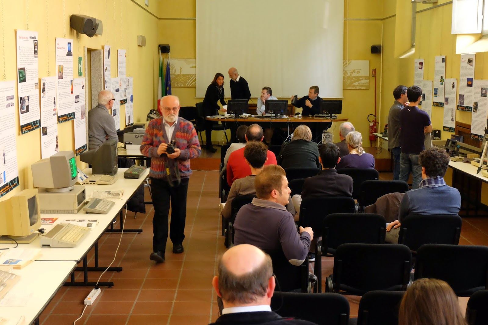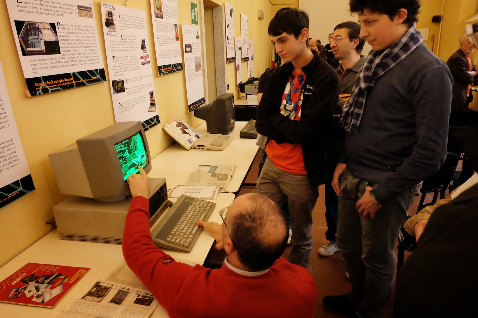 Ci aggiriamo ancora una volta tra i vecchi elaboratori, rispondendo alle domande del pubblico ed osservando l’entusiasmo dei più giovani di fronte ad un monitor a fosfori verdi.