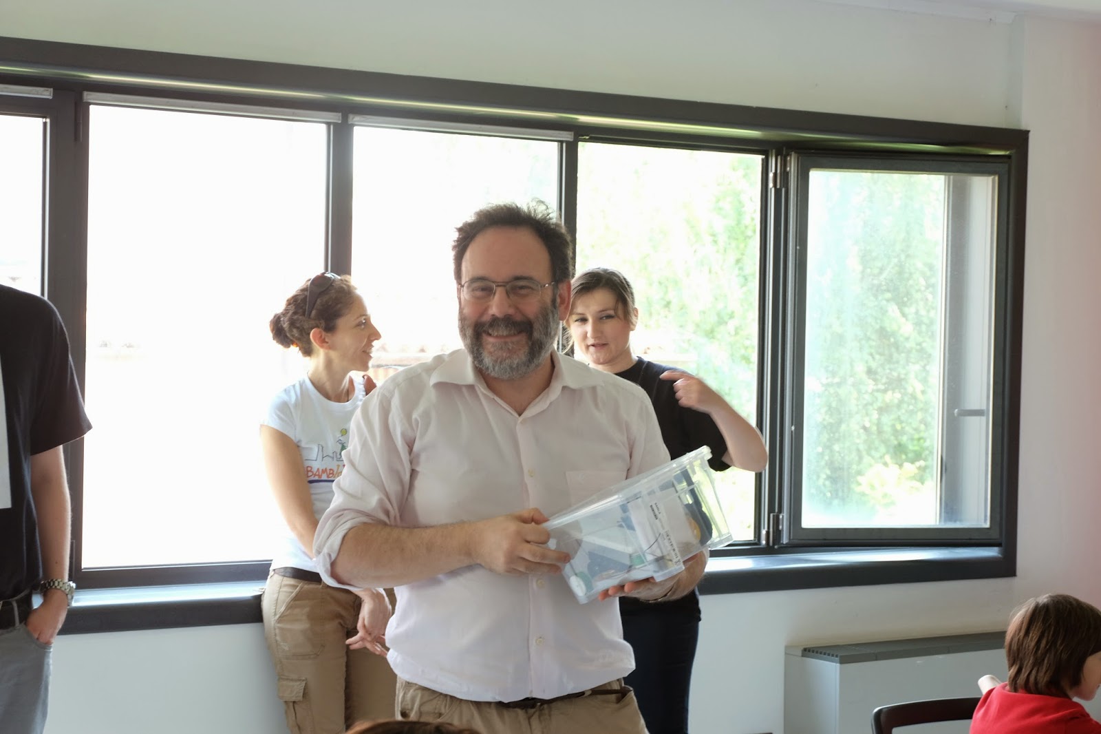 Oggi iniziamo consegnando ai partecipanti i 22 Kit che utilizzeranno in coppia. Lavorare in team è una delle capacità che i bambini hanno innate. Rimango sempre stupito quando vedo due bimbi che interagiscono senza alcuna difficoltà affrontando un problema complesso, anche se non hanno mai avuto modo di incontrarsi prima.