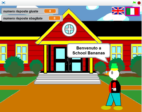 Il progetto Scratch, presentato da Alessandro (10 anni) e Matteo (8 anni) si chiama School Bananas ed è un videogioco divertente in cui Archimede chiede la classe frequentata e aiuta il giocatore ad allenarsi nelle 4 operazioni e nelle tabelline.