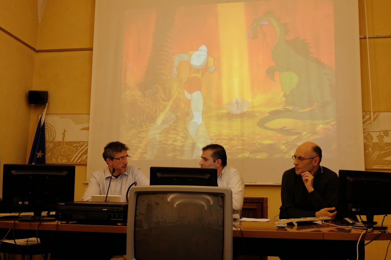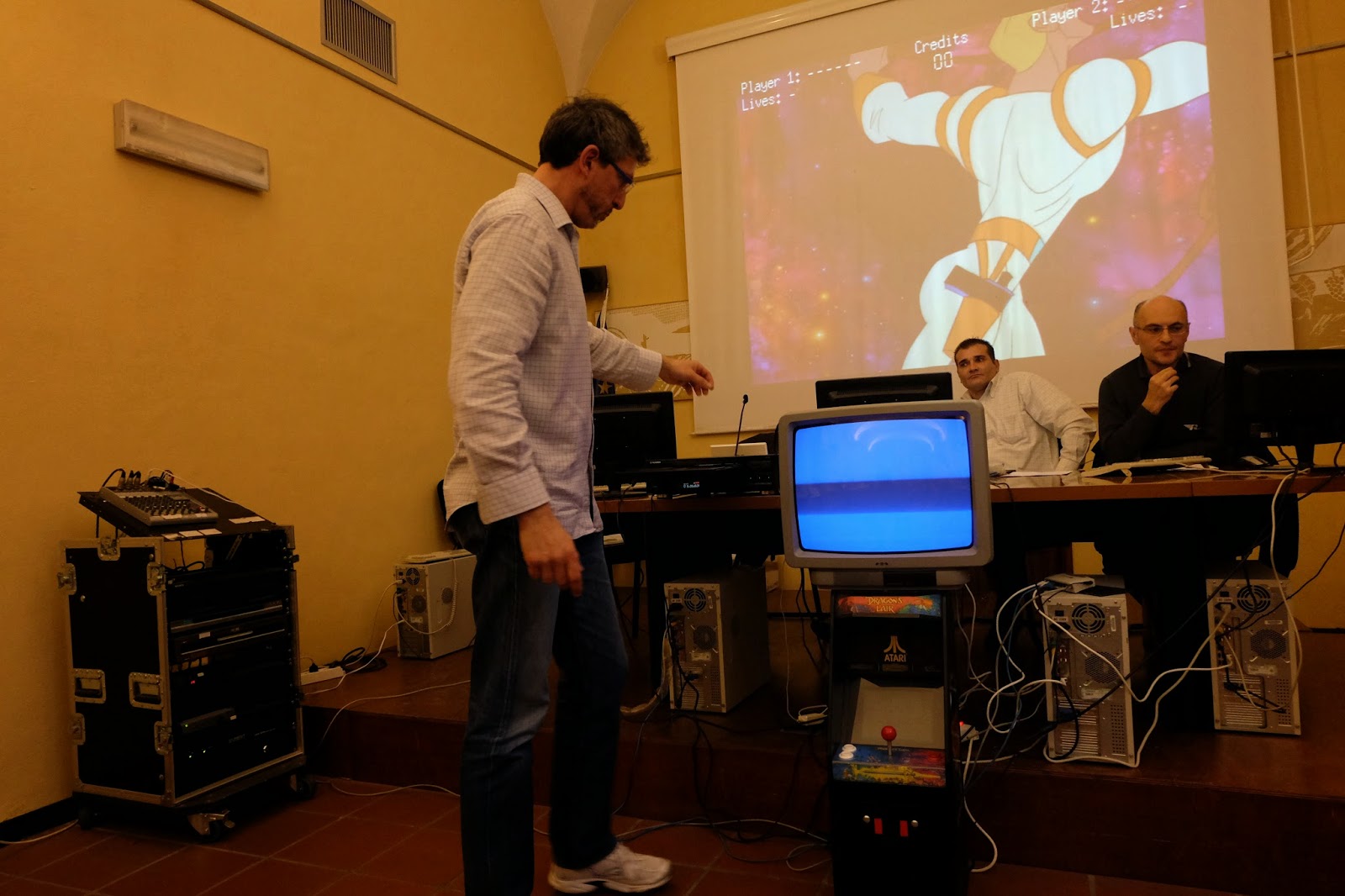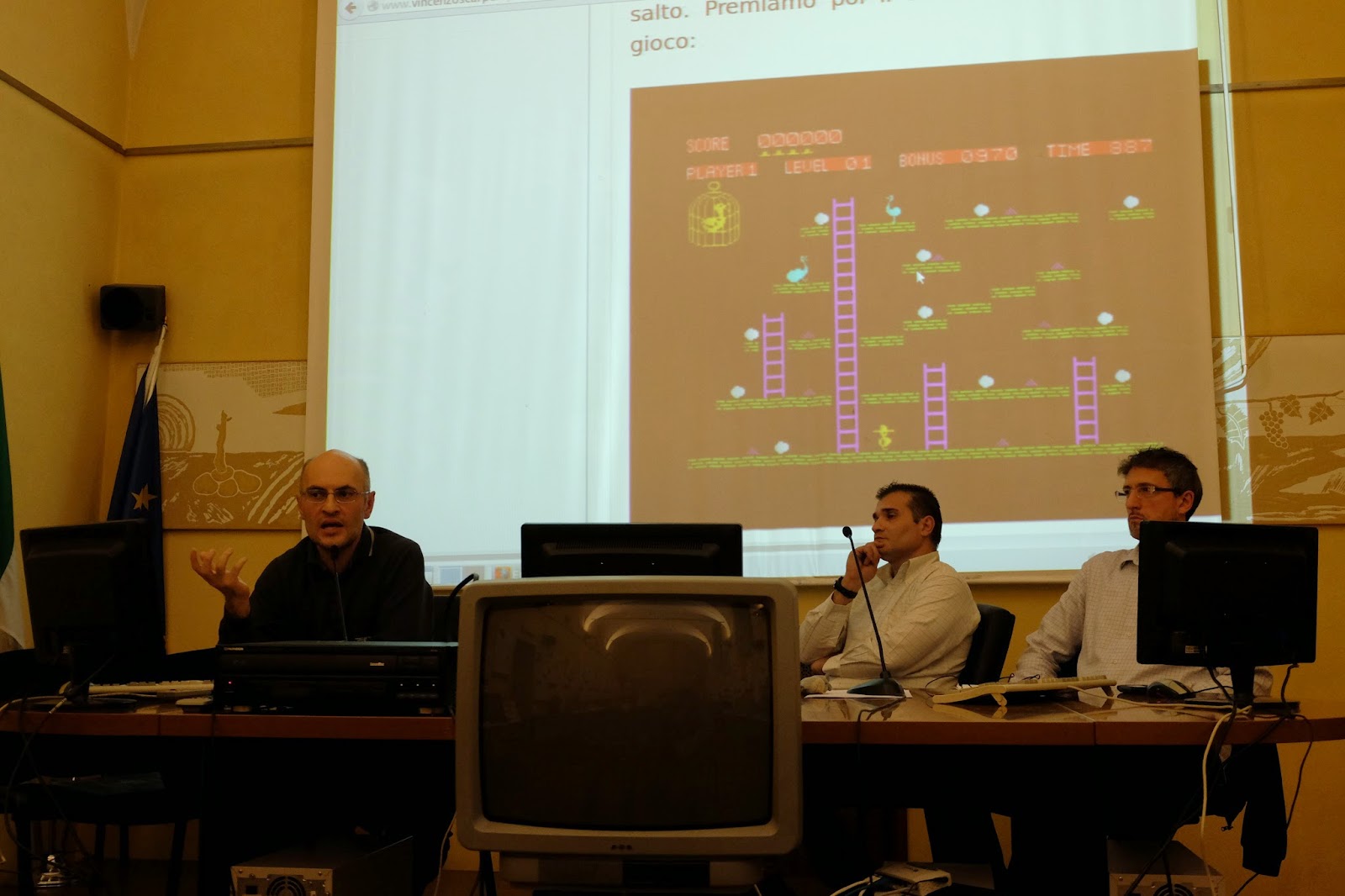 Conclude l’intervento con una emozionante proiezione in diretta del gioco, direttamente dal supporto originale.