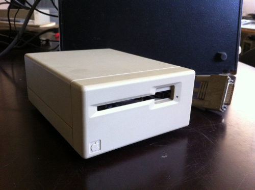 Abbiamo trovato questo drive assieme ad un esemplare di Apple IIgs che in cascata ne aveva un’altro per terminare poi la catena con un Disk IIc. Funziona sulla serie II solo se connessi ad una Superdrive card (che non abbiamo) o ai Macintosh SE senza supporto FDHD.