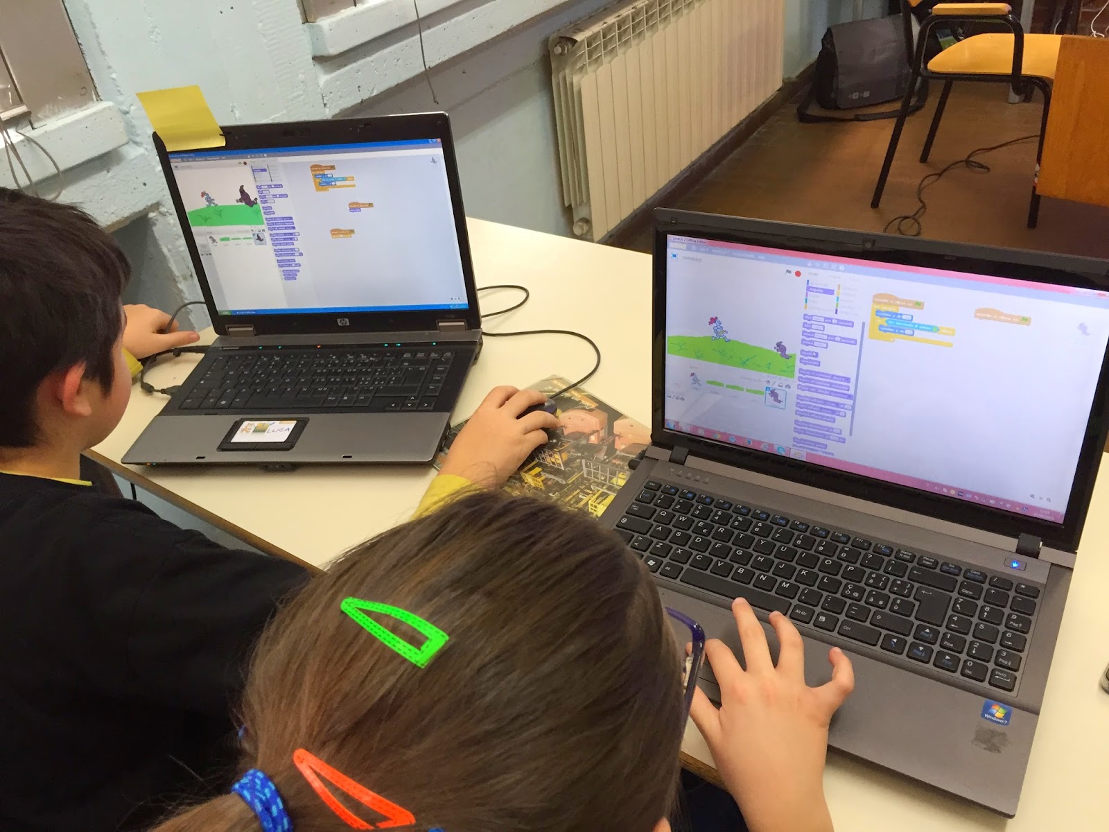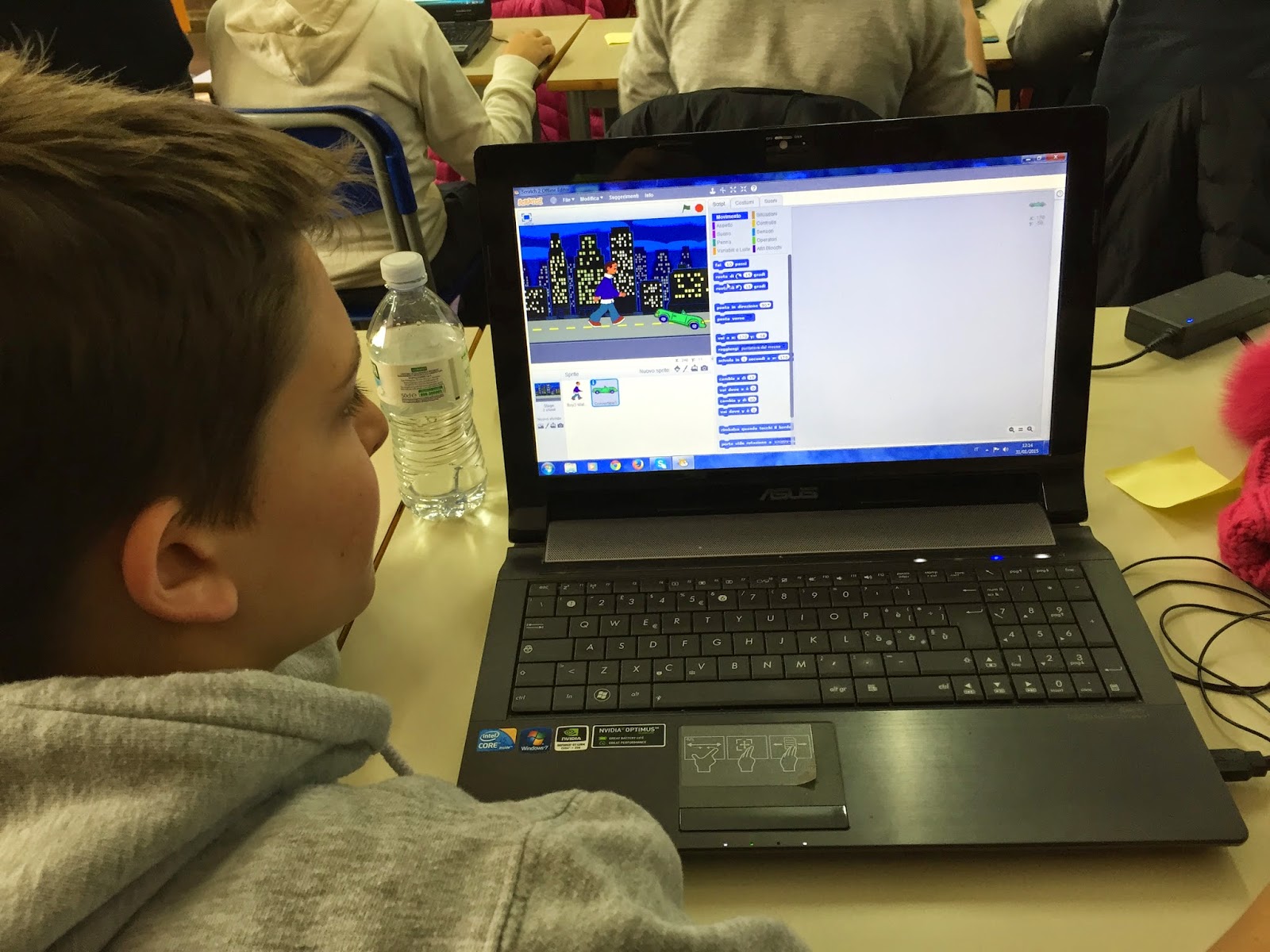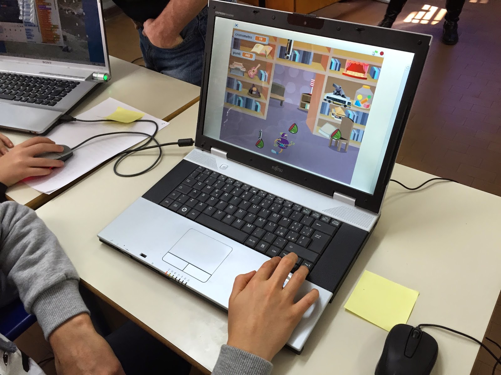 Ma anche il gruppo dei piccoli riesce presto ad abituarsi all’interfaccia di Scratch ed in un batter d’occhio recupera il leggero svantaggio, completando il progetto appena prima della pausa merenda.