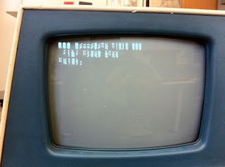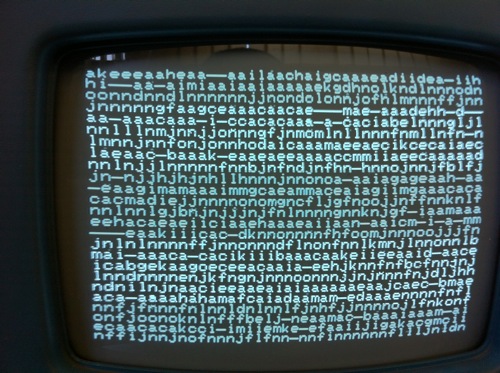 Questa schermata, decisamente più incoraggiante, lascia immaginare una scritta familiare. Alla pressione dei tasti della poco usabile tastiera, la lista dei caratteri senza senso si allunga…. altro buon segno.