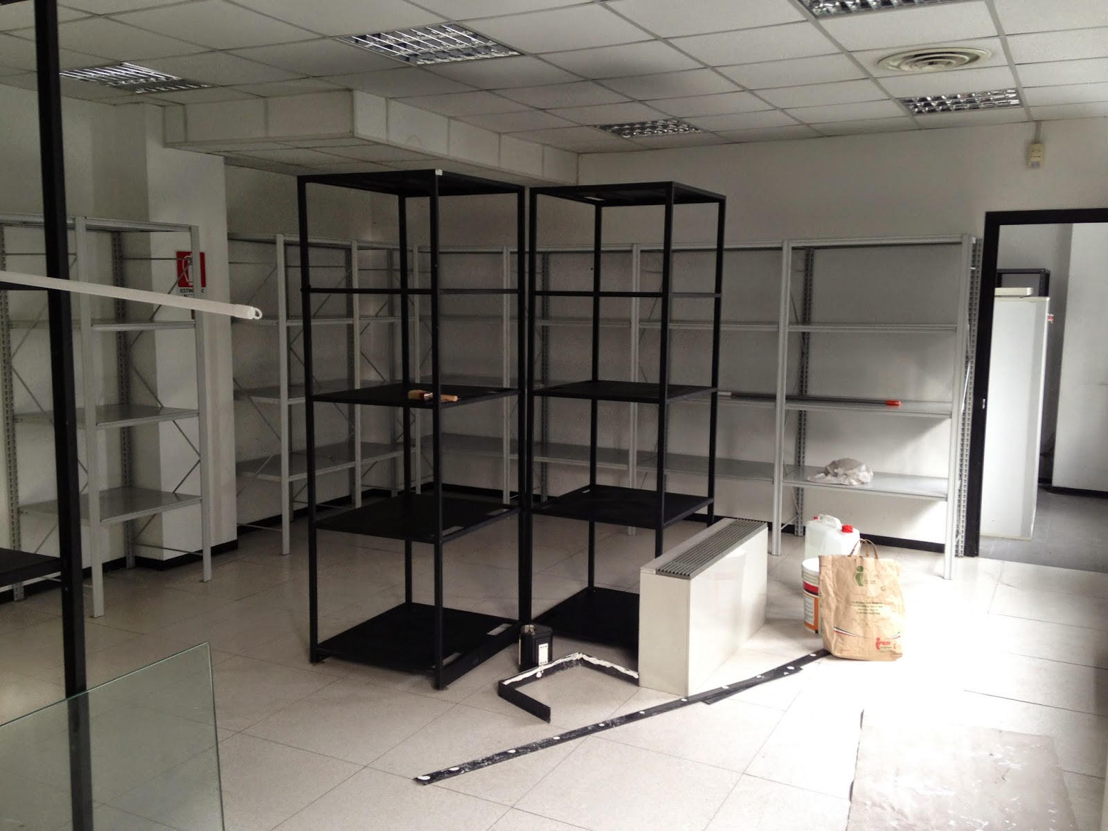 Gli scaffali nell’area museo sono quasi tutti montati. Questo ci permettere di cominciare ragionare su come disporre le macchine.